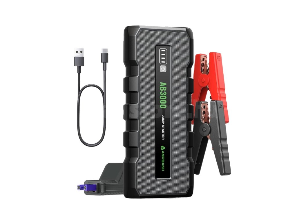 - Nagy teljesítményű AMPBANK AB3000 indítóakkumulátor – indító powerbank (jump starter) 3000 A csúcsárammal rendelkezik, és néhány másodpercen belül képes beindítani szinte minden 12 V-os járműmotort (legfeljebb 8 literes benzines vagy 6 literes dízelmotorokat). Teljes mértékben kompatibilis 12 V-os személyautókkal, teherautókkal, SUV-okkal, motorkerékpárokkal, traktorokkal, fűnyírókkal stb.