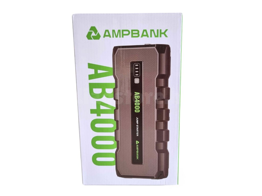 - Erőteljes indító akkumulátor – indító powerbanka (jump starter) Az AMPBANK AB4000 csúcsárama 4000 A, és néhány másodperc alatt képes elindítani szinte minden 12 V-os járműmotort (8 l-es (benzin) vagy 6 l-es (dízel) hengerűrtartalomig). Tökéletesen kompatibilis 12 V-os személygépkocsikkal, teherautókkal, SUV-okkal, motorkerékpárokkal, traktorokkal, fűnyírókkal stb.