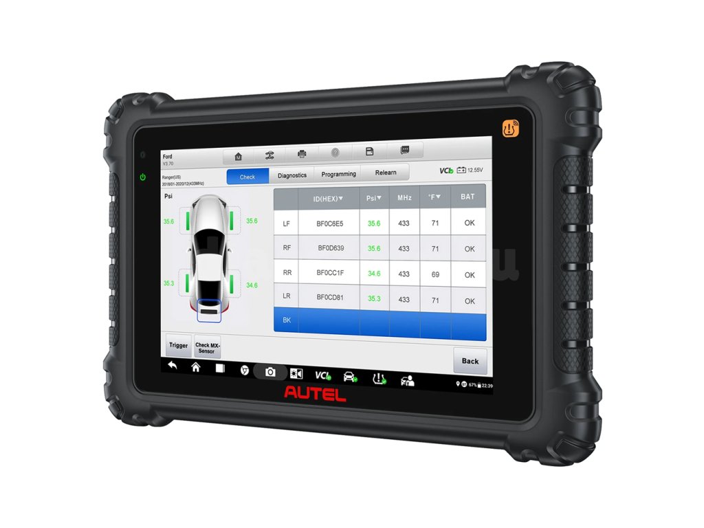 Az Autel MS906 Pro-TS teljes körű diagnosztikát biztosít a legtöbb európai, ázsiai és amerikai autó összes egységére, fejlett szervizfunkciókkal és TPMS kódolással kombinálva. Nem korlátozódik az OBD-II szabvány szerinti diagnosztikára. Támogatja a régebbi OBD-I járműveket is. Képes készenléti kódok kiolvasására, szervizintervallumok visszaállítására, a DPF diagnosztizálására és regenerálására, a fojtószelep-beállítások elvégzésére, az automata sebességváltó adaptációinak visszaállítására, TPMS teljes körű diagnosztikájára, akkumulátorok regisztrálására, befecskendezők, kulcsok és távirányítók kódolására – és számos egyéb feladatra. A motorvezérlő egységen kívül támogatja az automata sebességváltó, ABS, légzsákok, műszerfal és más járműegységek diagnosztikáját is. A vezeték nélküli VCI és a Full HD képernyő (1920x1200) kényelmesebbé teszi a diagnosztikai munkát. A készülék a járművek körülbelül 99%-ánál képes a TPMS szenzorok kódolására.