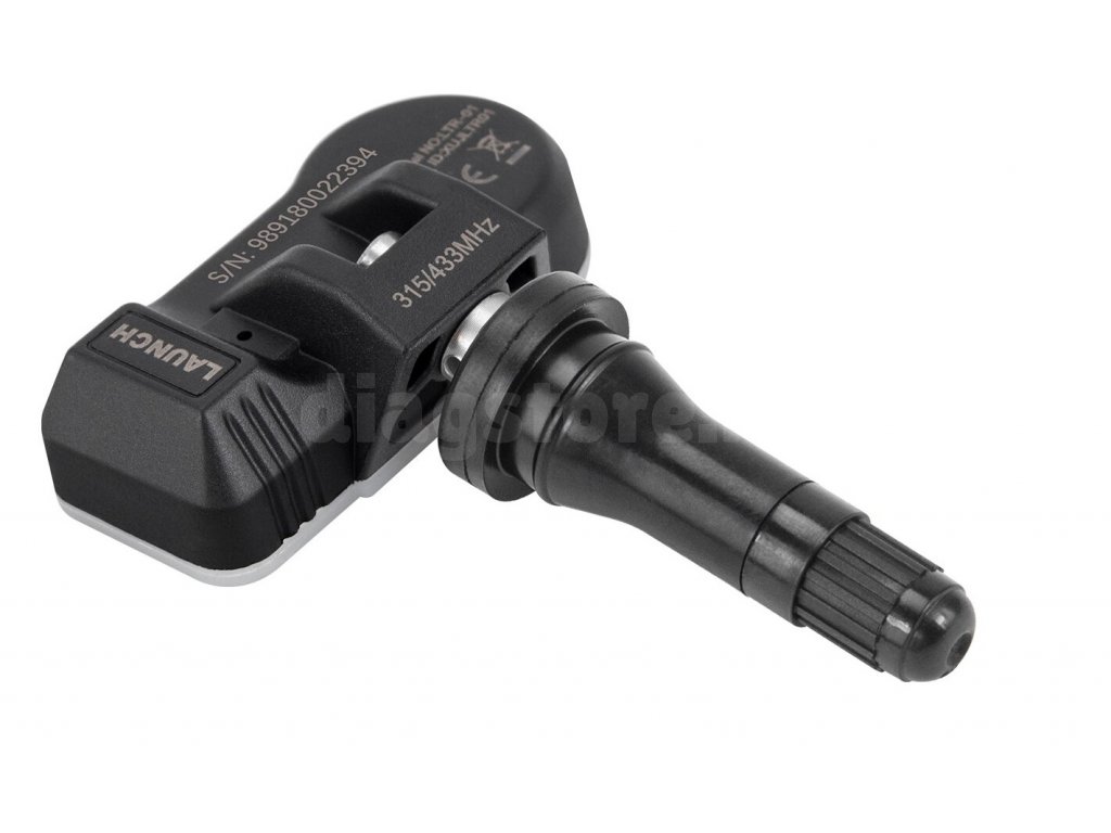 Univerzális Launch TPMS érzékelő gumiszeleppel, amely kompatibilis mind a 433 MHz, mind a 315 MHz frekvenciákkal. A TPMS-érzékelők klónozásához az i-TPMS bővítőmodul használható a Launch diagnosztikai eszközeivel.