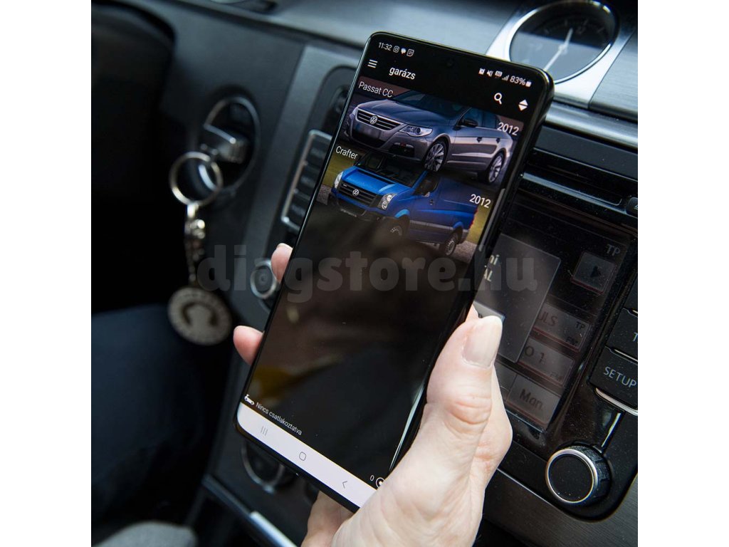 One-Click kreditek felhasználása, teljes autódiagnosztika, hibakódok olvasása és törlése, élő adatok megjelenítése, kimeneti tesztek, akkumulátor állapot teszt, grafikonok, digitális riasztók, diagnosztikai adatok megosztása, csatlakoztatási előzmények, járműinformációk, automatikus azonosítás VIN alapján, garázsfunkció, biztonsági mentés, hibakódok követése, felhasználói eljárások